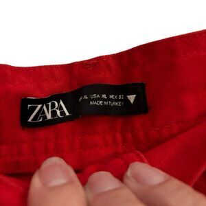 Zara Red Carpenter Utility High Rise Wide Leg Pant Size 32
