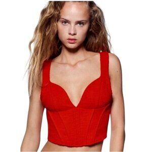 Zara red corset crop top. Good condition. Tag says L. Fits like a S. NO TRADES.