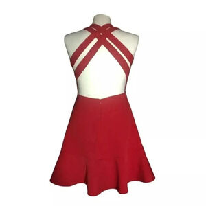 Zara Women's Red Crisscross Backless Mini Dress. Wonderful for summer, can be worn day or night. Feminine, classy high neck style with modern twist for the exposed back. Zipper and clasp closure at the back of the waist.