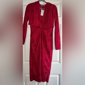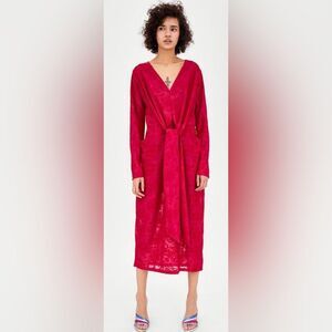 Zara Red Crossover Floral Lace Sheer Dress Size Small NWT romantic holiday fairy
