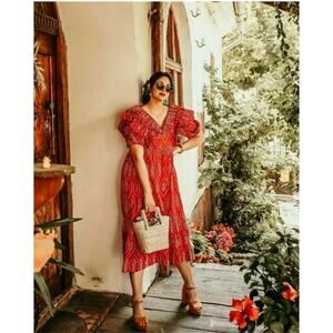 Zara Red Dress with Eyelet Embroidery Midi Length Size Small