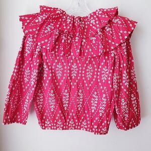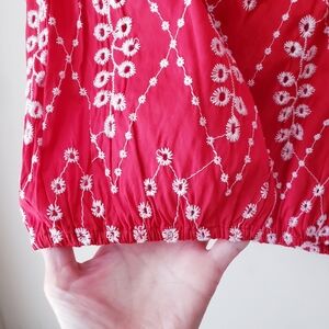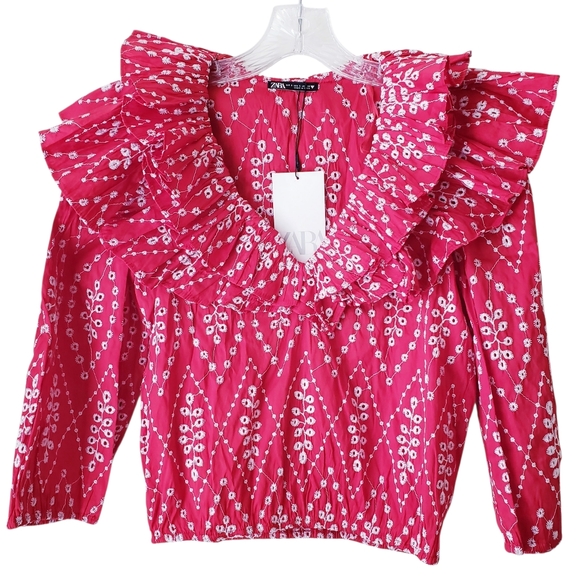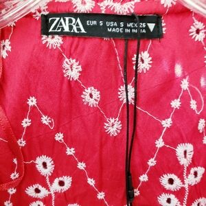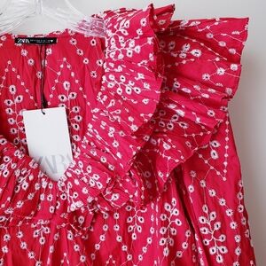 Zara red and white eyelet ruffle top with v-neckline. New with tag. In very good clean condition and comes from a smoke free home. Size Small Feminine sweet romantic spring summer style