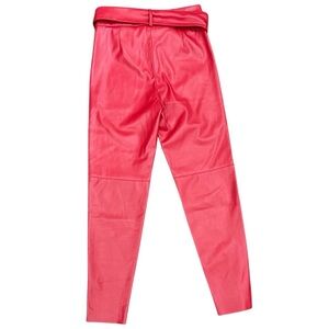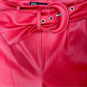 Zara Red Faux Leather High-Waisted Belted Pants | Size M