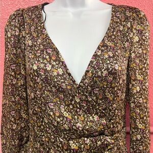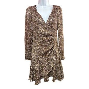 This stunning Zara dress showcases a vibrant red hue with a flattering fit and flare silhouette, ideal for cocktail events. The wrap design is accentuated by a v-neckline and long puff sleeves, adding a touch of elegance. A ruffled hemline completes the look, enhancing its feminine allure.