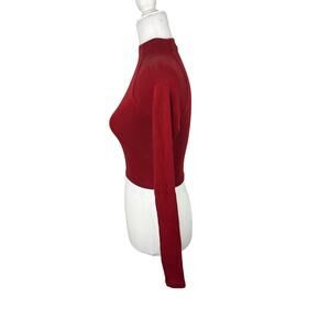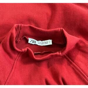 Zara Red Fitted Long Sleeve Crop Top Turtleneck Size Small