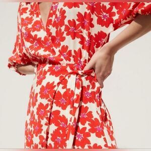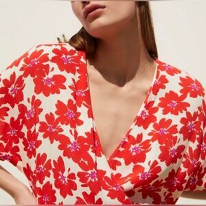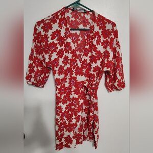 Zara Red Floral Print Wrap Mini Dress size XS