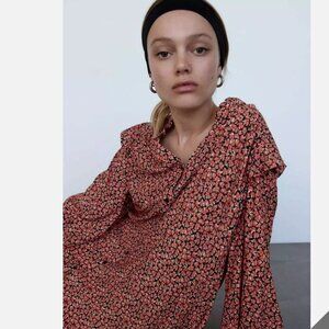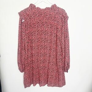Zara Red Floral Printed Button Ruffle Shoulder Long Sleeve Mini Dress XL