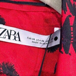 Add a pop of color and floral flair to your wardrobe with this Zara blazer. Its wrap style and vibrant red hue make it a standout piece for any outing.