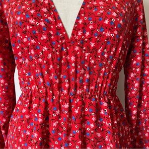 Preowned but in excellent condition! Zara red floral mini dress Pullover style Cinched waist Size XS No flaws