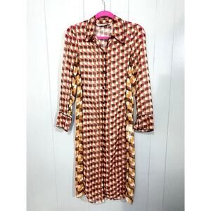 Zara Red Geometric Mod Print Button-down Sheer Cover-up Dress Long Tunic XS