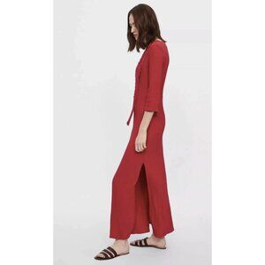 Zara Red Knotted Crochet Neck Maxi Dress Column Long Sleeve Small