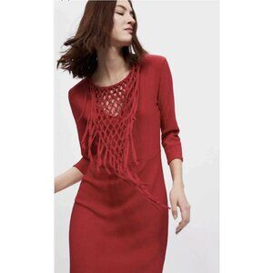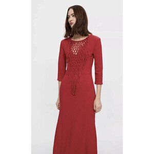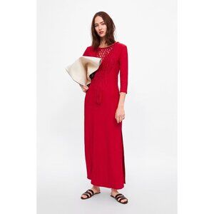 Zara Red Knotted Crochet Neck Maxi Dress Macrame Sheath Column Long Sleeve Small