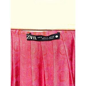 Zara Red Long Sleeve V-Neck Geometric Print Midi Dress Women's Size M