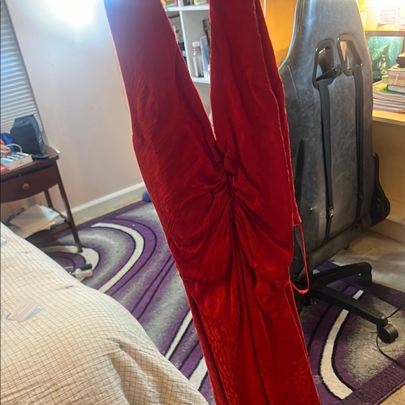 Elegant red mini dress by Zara. Features a ruched design. Perfect for a night out.