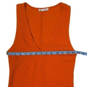 Zara Red Orange Bodycon Deep V Neck Summer Dress Women's Medium