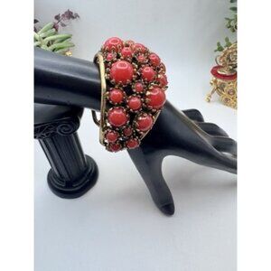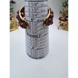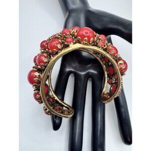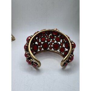 Zara Red Resin Accent Chunky Cuff Bracelet Gold Tone Open-Ended Design NWOT