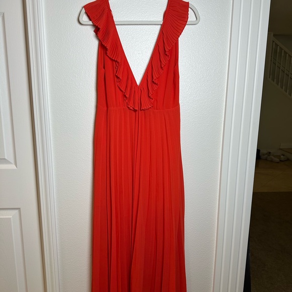 Zara Red Ruched Ruffled Maxi Sundress