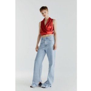 Zara Red Satin Effect Wrap Top Shirt Sz XS NWT