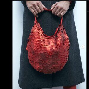 Zara Red Sequin Bucket Bag NEW WITH TAG!