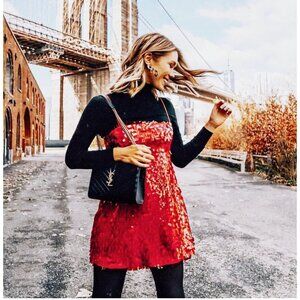 Zara Red Sequin Mini Dress Sparkle Slip Party Cocktail New Years Blogger Fave M