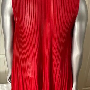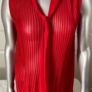 Zara Red Sheer Pleated Blouse Top Women Size Large Sleeveless New With Tags