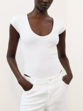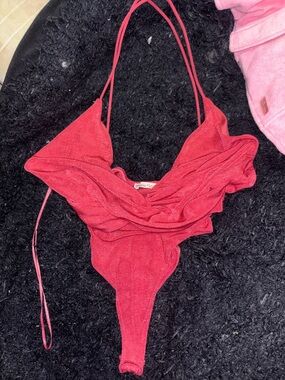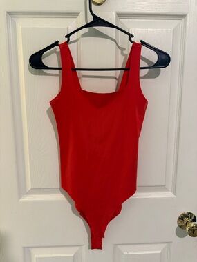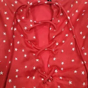 Zara Red Star Printed Satin Effect Bodysuit Sz XL