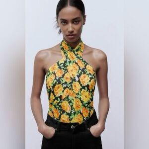 Zara Red Star Printed Satin Effect Bodysuit - New With Tags