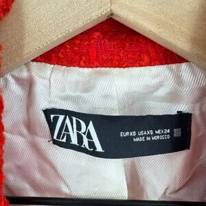 Zara Red Tweed Double Breasted Blazer Gold Buttons XS Holiday Party Chic
