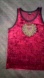 Luxurious red velvet tank top. Features intricate embroidered heart design. Perfect for a bold statement.