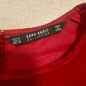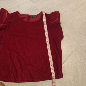 Zara Red Velvet short sleeve Blouse With Ruffles Size S