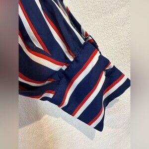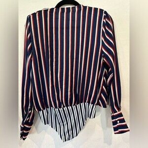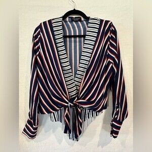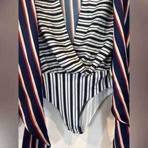 Zara Red, White, Blue Striped Long Sleeve Tie Front Bodysuit Size Small