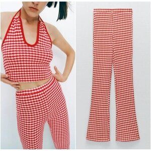 Zara Red & White Knit Flared Sweater Holiday Pants Size M