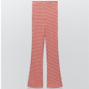 Zara Red White Knit High Waist Flare Leg Pants Trousers