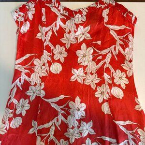🌺 Silky red and white floral dress - perfect for an island vacation, date night, or casual outing dressed down with a denim jacket.