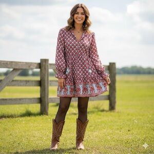 Zara Red and Blue Bohemian Dress Size Large NWOT