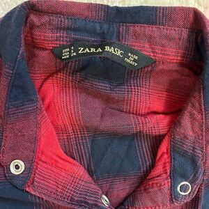 Zara Red and Navy Plaid Button-Up Shirt