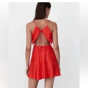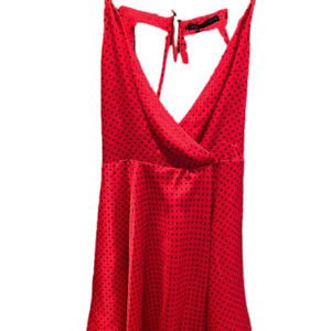 Zara Red with Black Polka Dots Satin Open Back Mini Dress