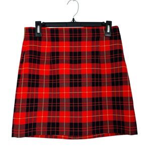 Zara Red Plaid Mini Zip Skirt Size Medium