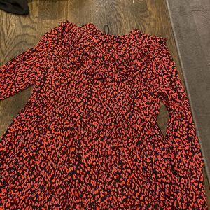 Stylish long sleeve dress. Red and black pattern. Perfect for any occasion.