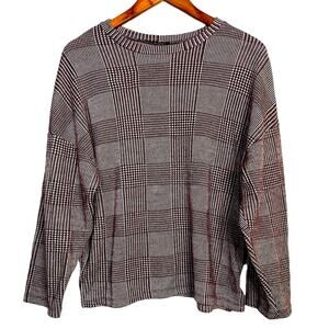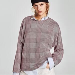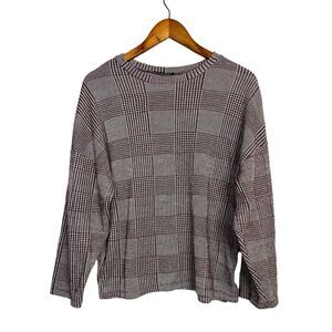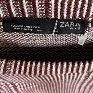 Zara Relaxed Fit Long Sleeve Lightweight Soft Crew Neck Knit Sweater M Burgundy White
