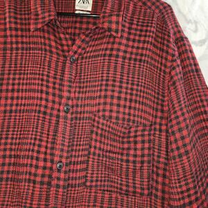 Zara Relaxed Fit Plaid Red/Black Women's Flannel Button Up Size XL