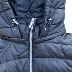 Zara Removable Hood Puffer Jacket Women Sz L Black Neutral Quilted Everyday