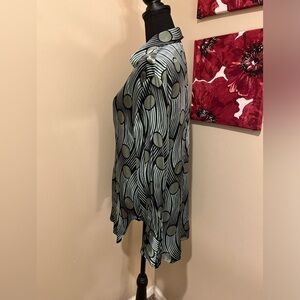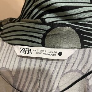 Zara Retro Print Collared Satin-Feel Blouse, size L