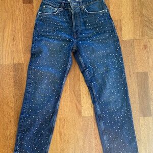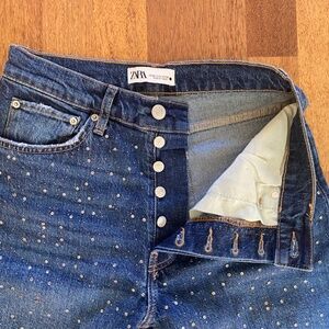Zara Rhinestone Ankle Jeans sz 8 Straight Leg Button Fly Mid-Hi Rise