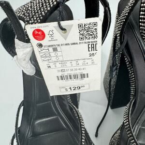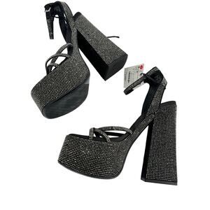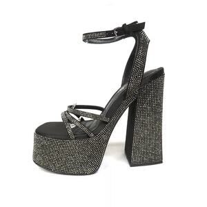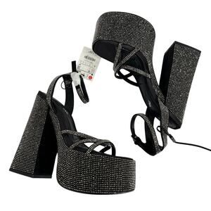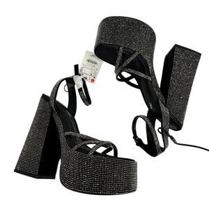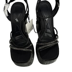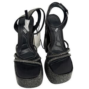 Zara Rhinestone Chunky High Heeled Platform Sandals Black & Silver Size 6