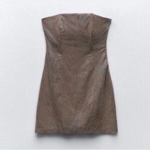 Zara Rhinestone Mini Body con Tan/Brown Dress (Size Small)