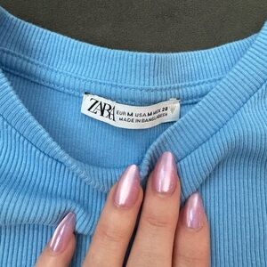Zara Ribbed Blue Top with Ruffle Sleeves