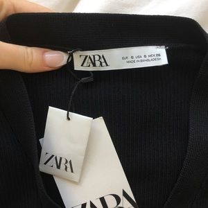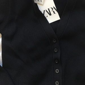 zara black ribbed long sleeve button up crop top