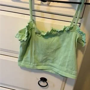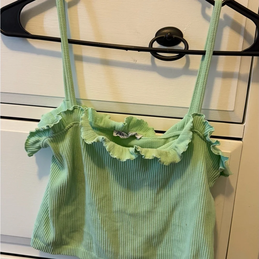 Zara Ribbed Crop Ruffle tank. Seafoam green color, size M-L. No stains, damages or defects