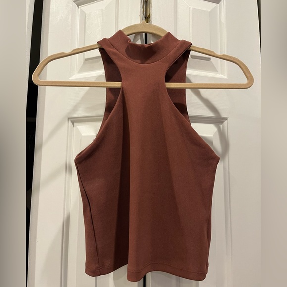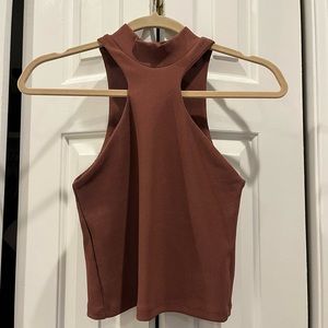 Turtleneck sleeveless rust ribbed crop top